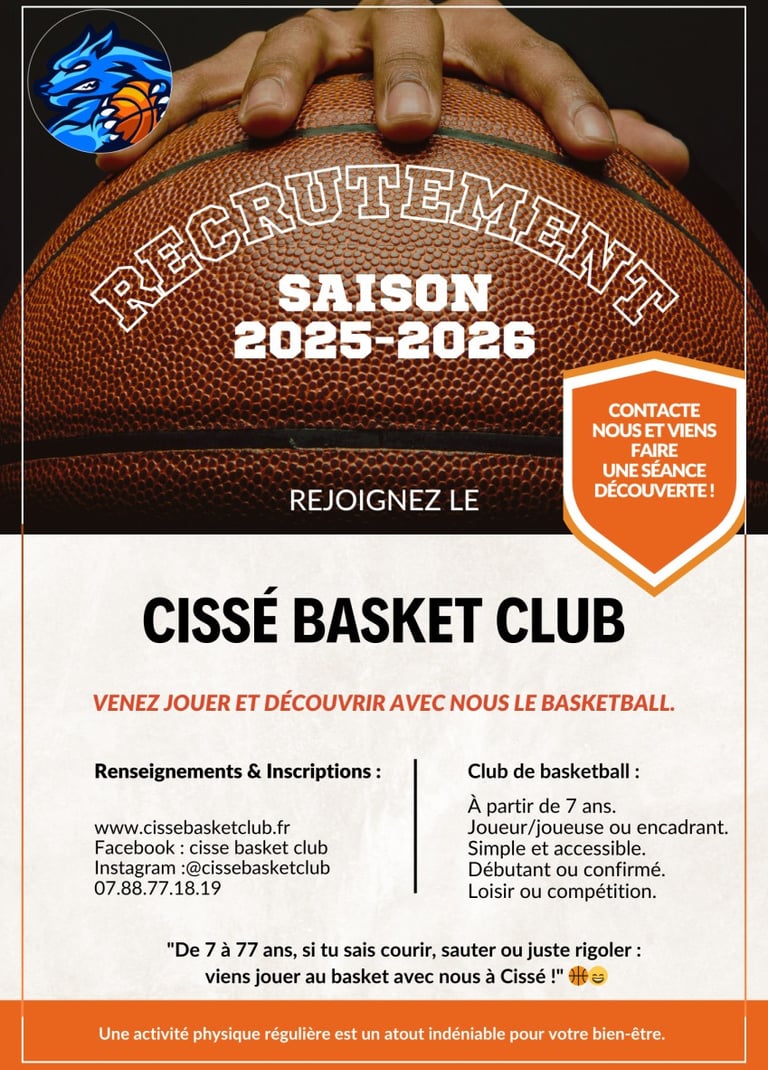 Venez vivre l'expérience unique du Cissé Basket Club ! Plongez dans un univers où passion et camaraderie se rencontrent à chaque dribble et à chaque panier. Que vous soyez un joueur expérimenté ou simplement à la recherche de fun et de sport, notre club est le lieu idéal pour développer vos compétences, rencontrer de nouveaux amis et partager des moments mémorables sur le terrain. Ne manquez pas l'occasion de faire partie de notre équipe dynamique et de vivre la joie du basketball à son meilleur. Inscrivez-vous dès maintenant et rejoignez-nous pour une saison pleine d'action et d'excitation !